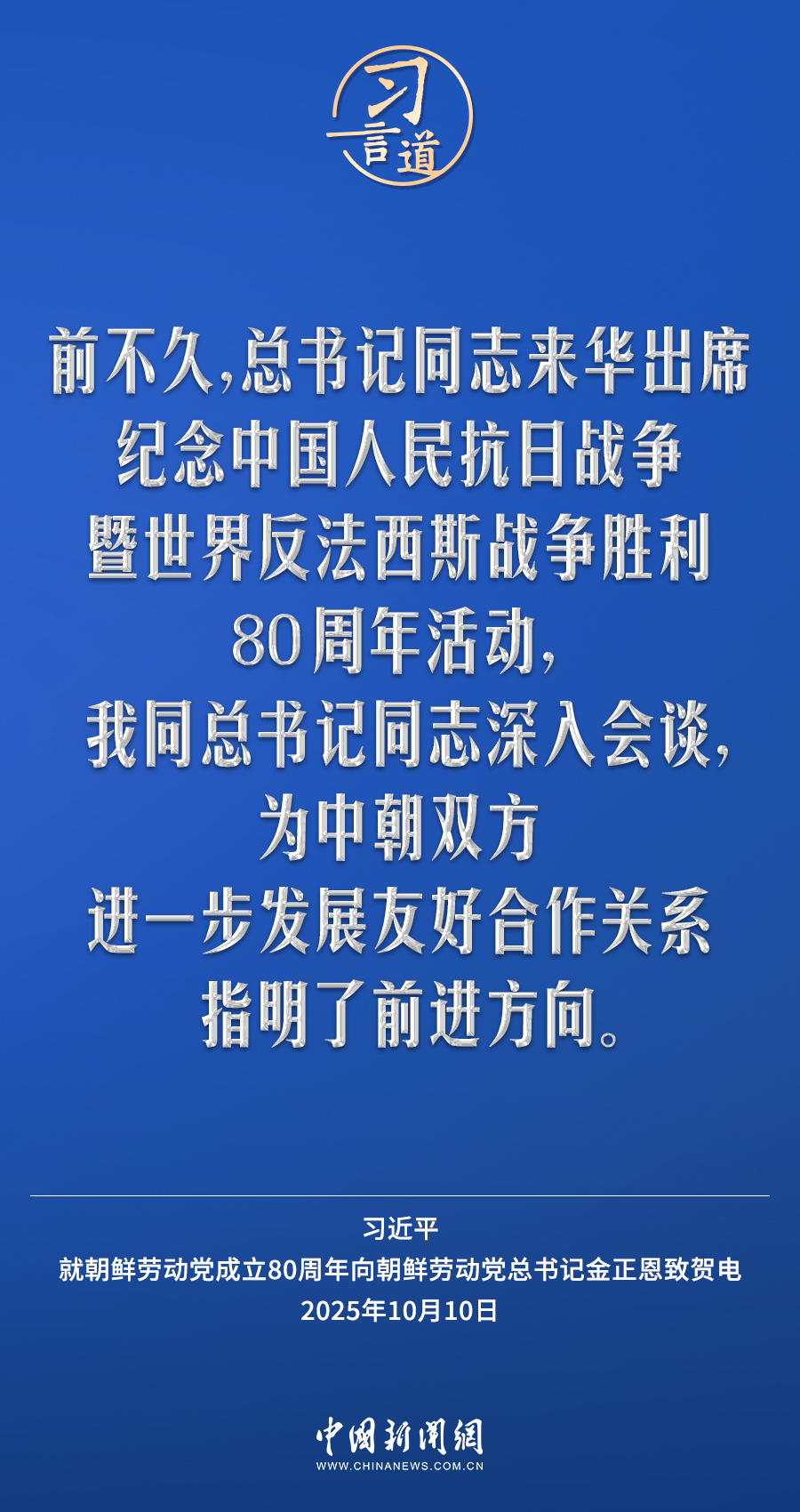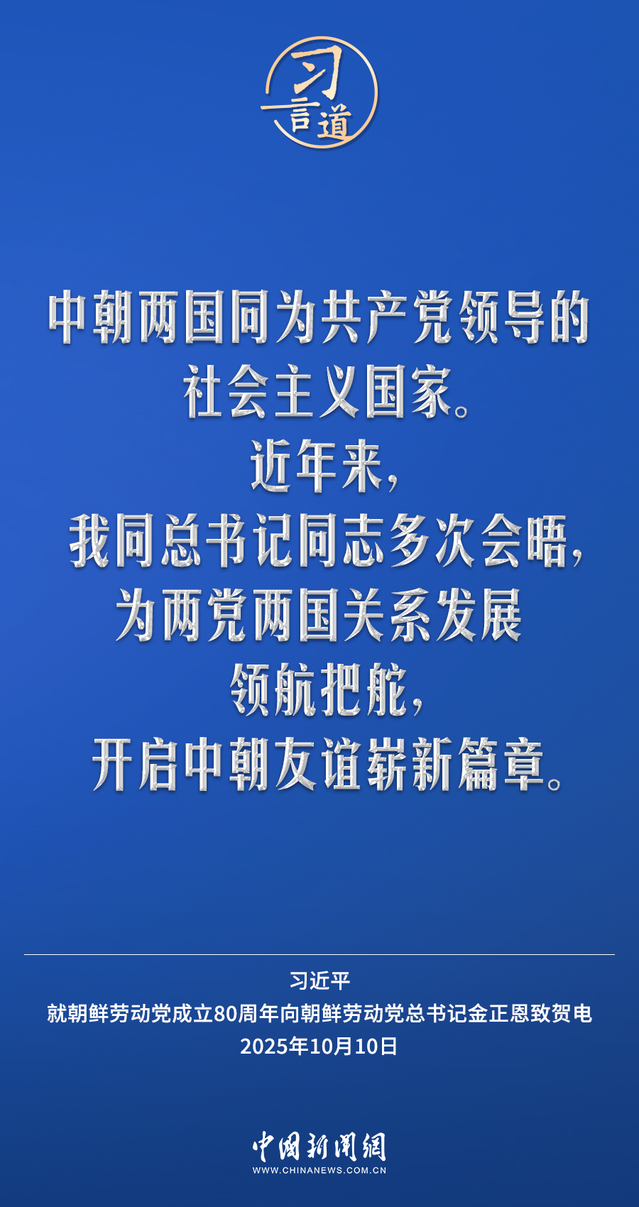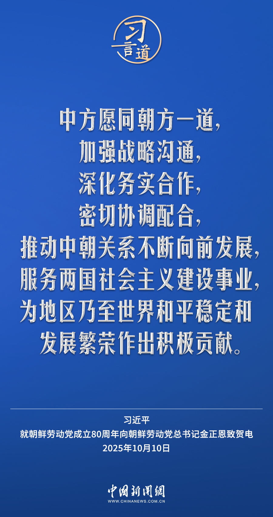 10月10日,中共中央总书记习近平致电朝鲜劳动党总书记金正恩,祝贺朝鲜劳动党成立80周年。