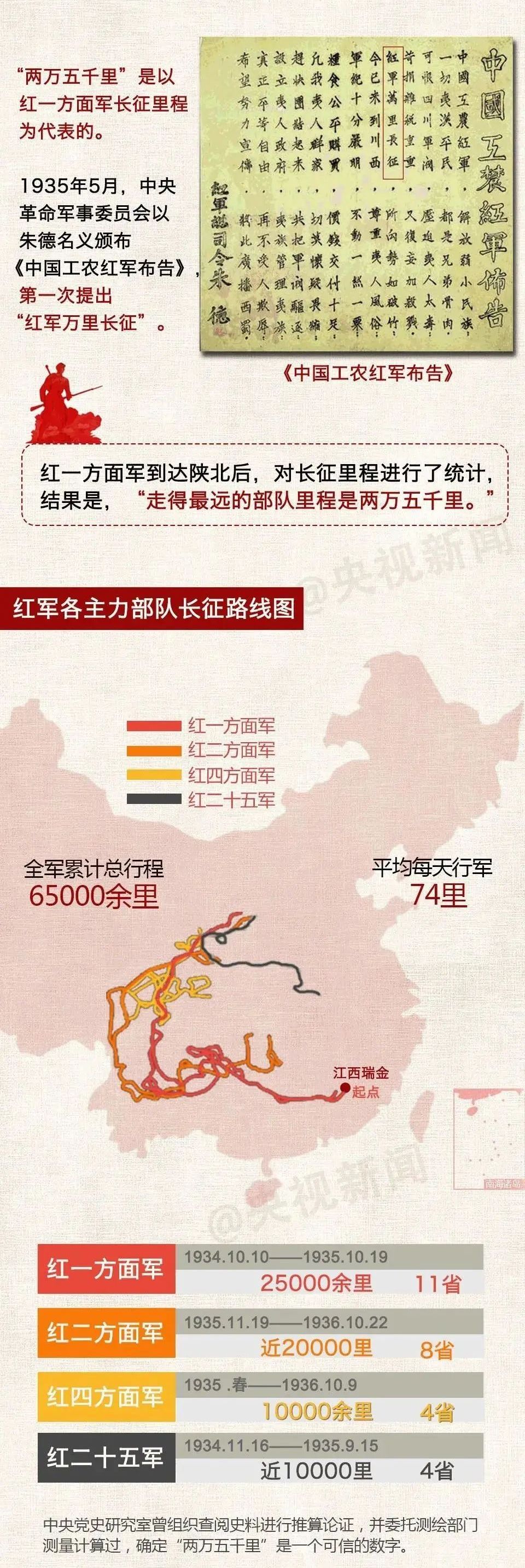 各路红军行程总和约65000里