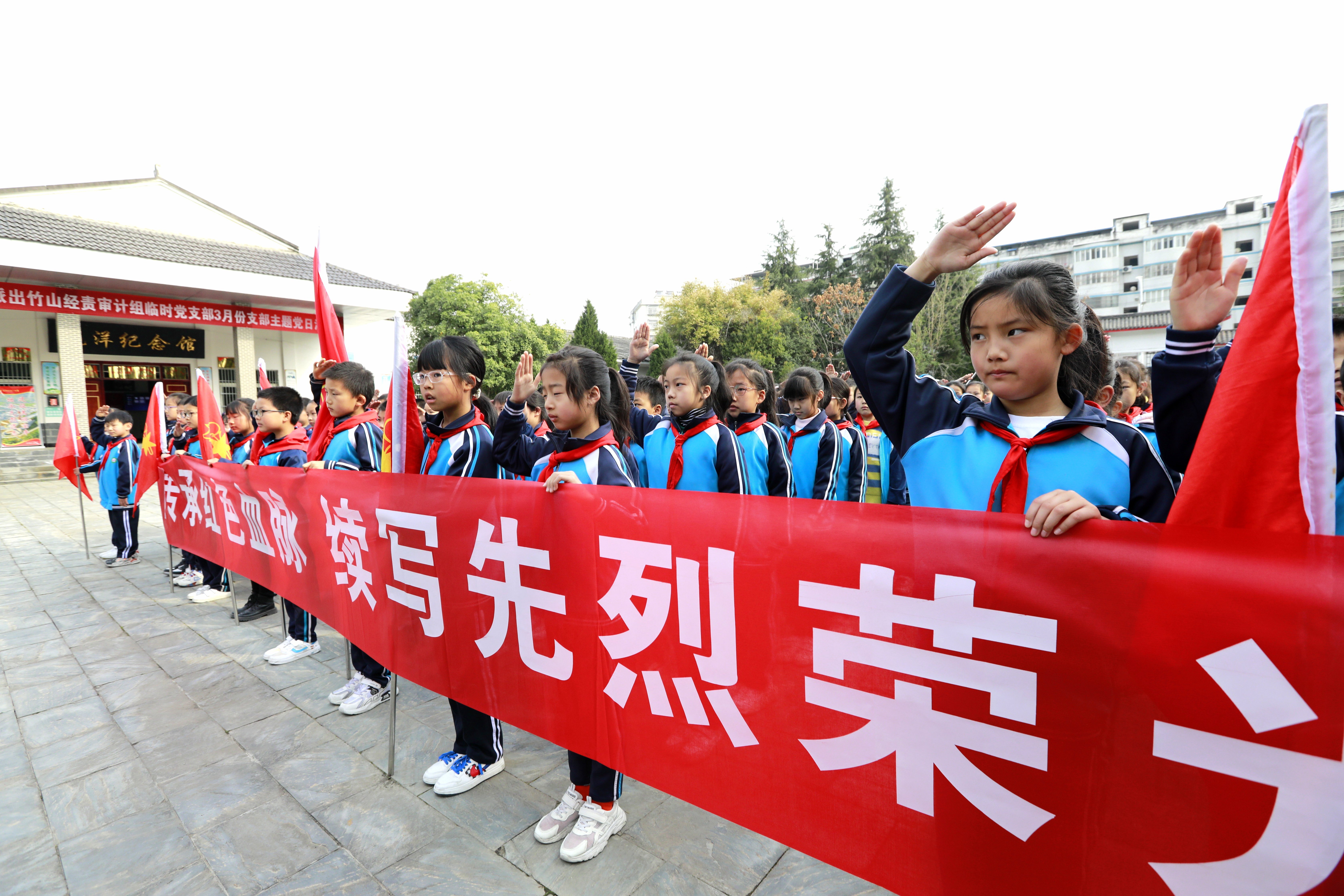 仪式教育常态化。在重要节日(清明、七一、烈士纪念日等)及入队、入团、成人礼等关键节点,组织学生到红色场馆举行庄严仪式。在许明清烈士墓前举行的入团宣誓,成为许多竹山学子终生难忘的记忆。