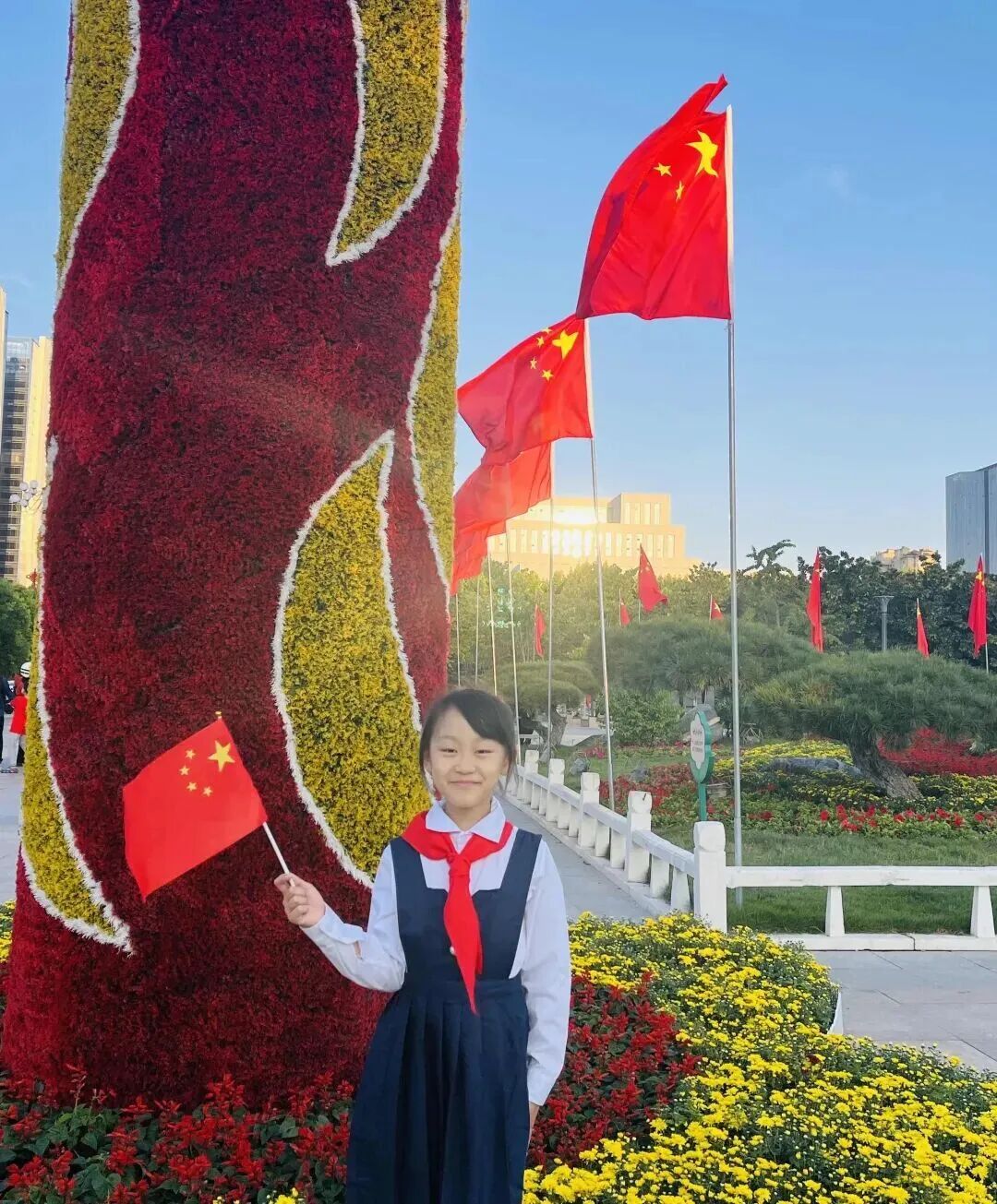 金秋送爽,国旗飘扬