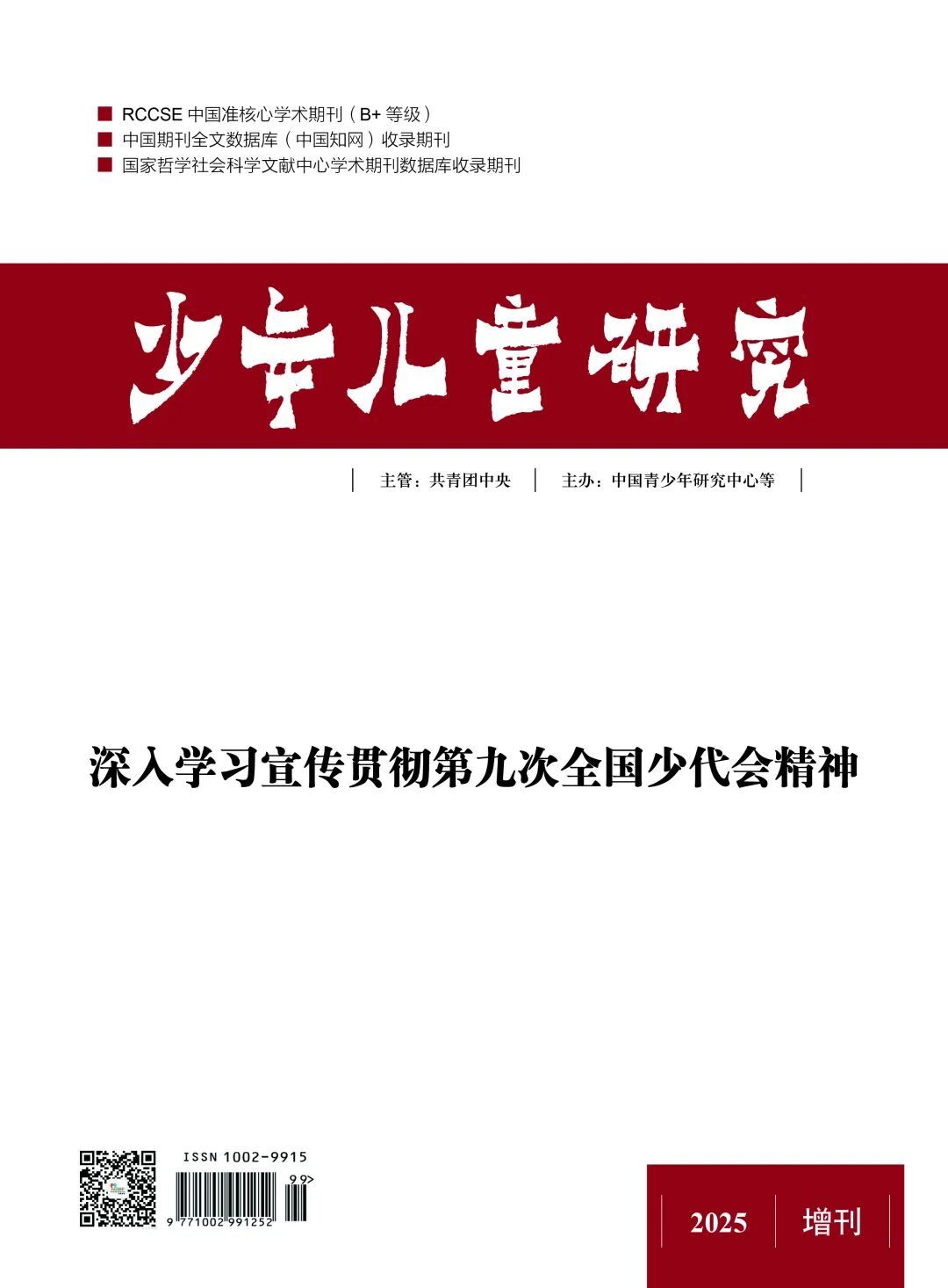 按:为深入学习贯彻习近平总书记致第九次全国少代会重要贺信和党中央致词精神,进一步加强对习近平总书记关于少年儿童和少先队工作的重要论述的研究阐释,今年6月,全国少工委办公室、中国青少年研究中心、中国少年先锋队工作学会共同发布征稿启事,特别策划《少年儿童研究》杂志“深入学习宣传贯彻第九次全国少代会精神”增刊。期间,共收到投稿467篇,经严格评审,最终收录22篇优秀论文。期待广大专家学者、团干部、少先队辅导员以及热心少年儿童和少先队工作理论研究的各界人士,不断拓展研究视域、深化理论阐释、加强资政建言,为推动新时代新征程少先队工作高质量发展贡献学术力量。