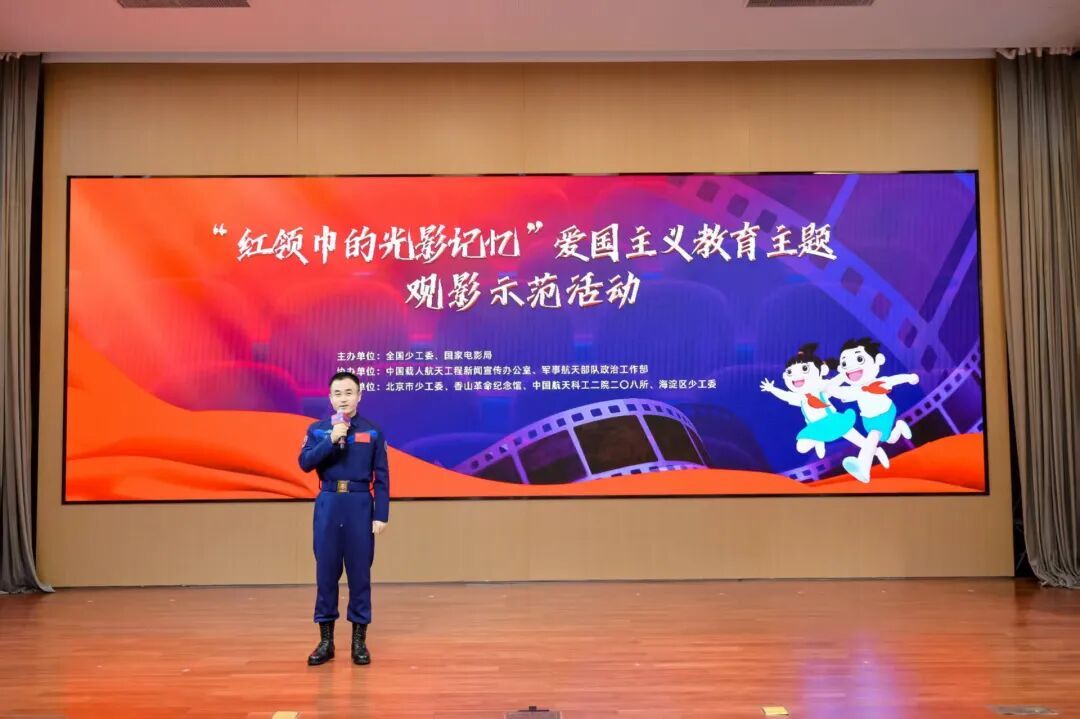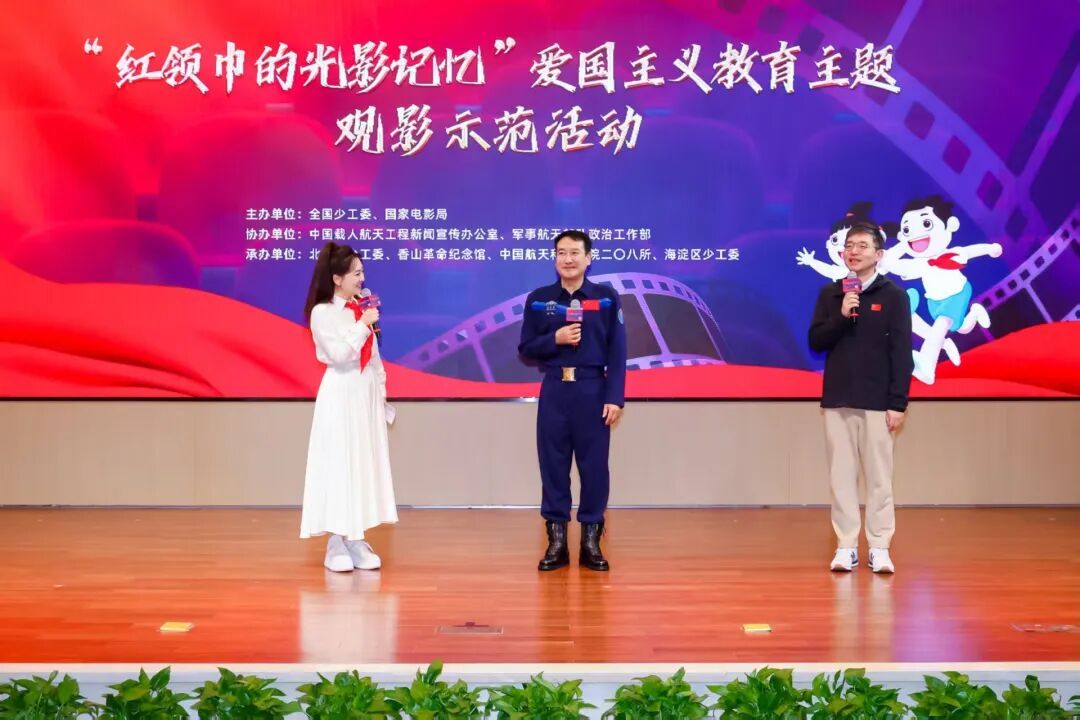 活动现场,来自北京市的近200名少先队员、少先队辅导员代表共同观看了中央广播电视总台领衔出品的我国首部8K拍摄太空电影《窗外是蓝星》。该部电影以神舟十三号飞行乘组首次执行在轨驻留6个月任务为蓝本,主要画面由神舟十三号航天员翟志刚、王亚平、叶光富作为摄影师在中国空间站拍摄。神舟十三号任务指令长翟志刚、电影《窗外是蓝星》导演朱翌冉与少先队员互动交流。