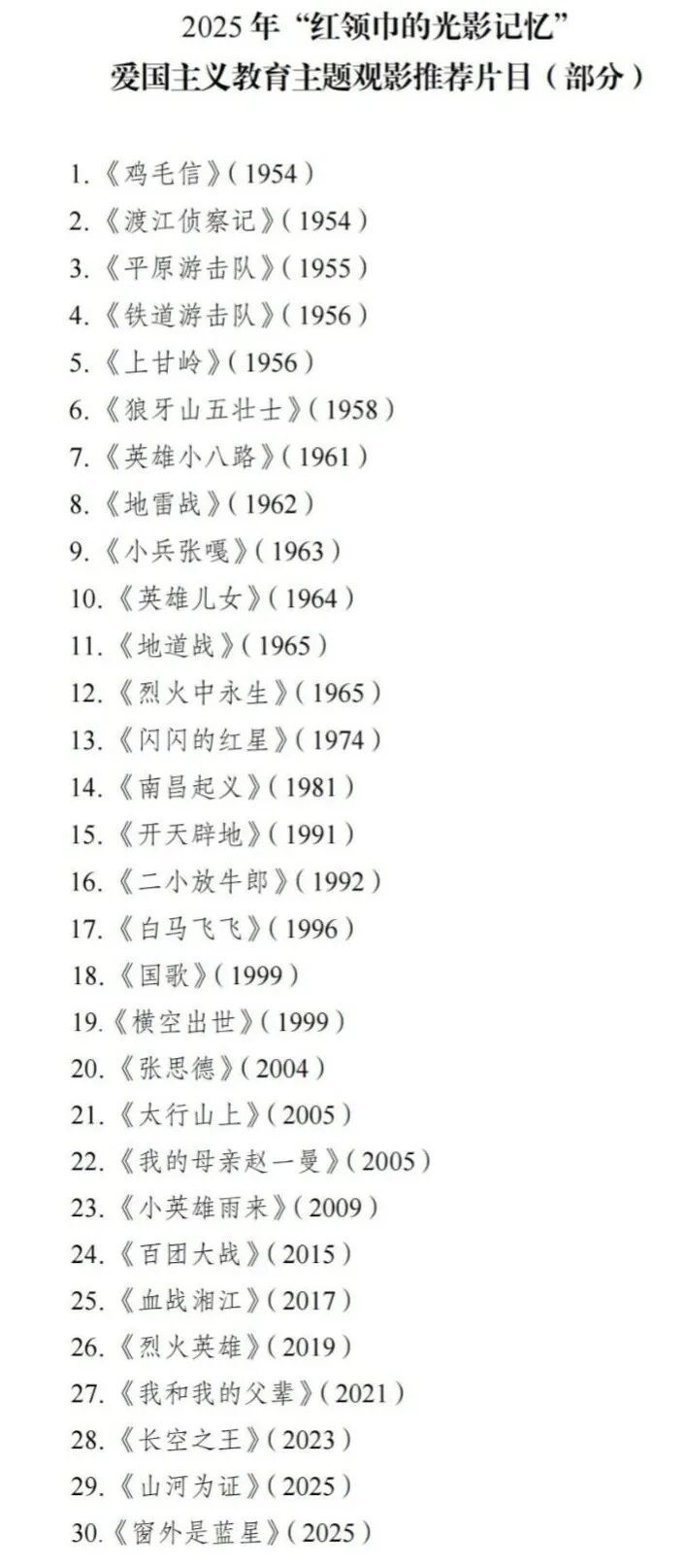 据了解,为深入贯彻爱国主义教育法,教育引导广大少先队员传承红色基因,全国少工委、国家电影局近日联合印发通知,部署开展“红领巾的光影记忆”爱国主义教育主题观影活动,并首批推荐30部爱国主义题材优秀影片。活动将动员各地依托具备放映条件的中小学校、青少年宫、青年之家以及城乡社区阵地,鼓励以少先队大、中、小队等形式集体观看,注重服务新经济组织、新社会组织、新就业群体子女及留守儿童等群体,开展主题实践体验,引领广大少年儿童争当爱党爱国、勤奋好学、全面发展的新时代好少年。