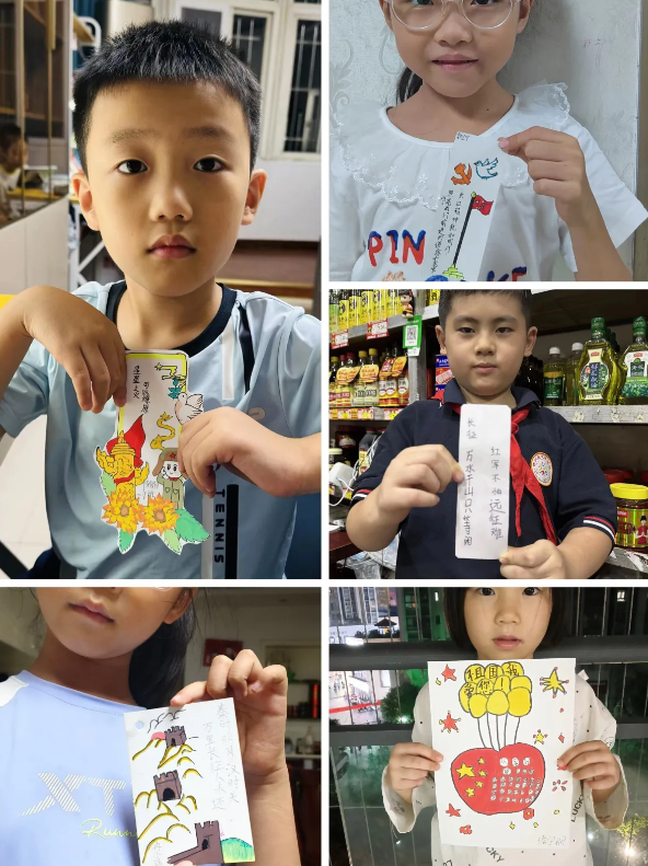 这是创意与情怀的碰撞。低年级的队员巧手制作“长征精神”书签和手抄报,一笔一画绘就峥嵘岁月,传承不朽信念。