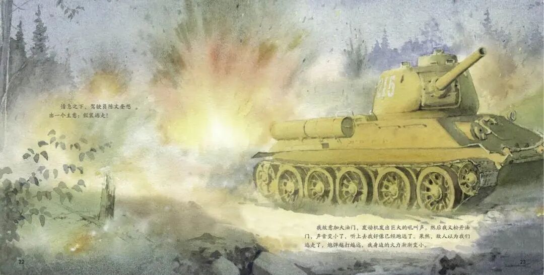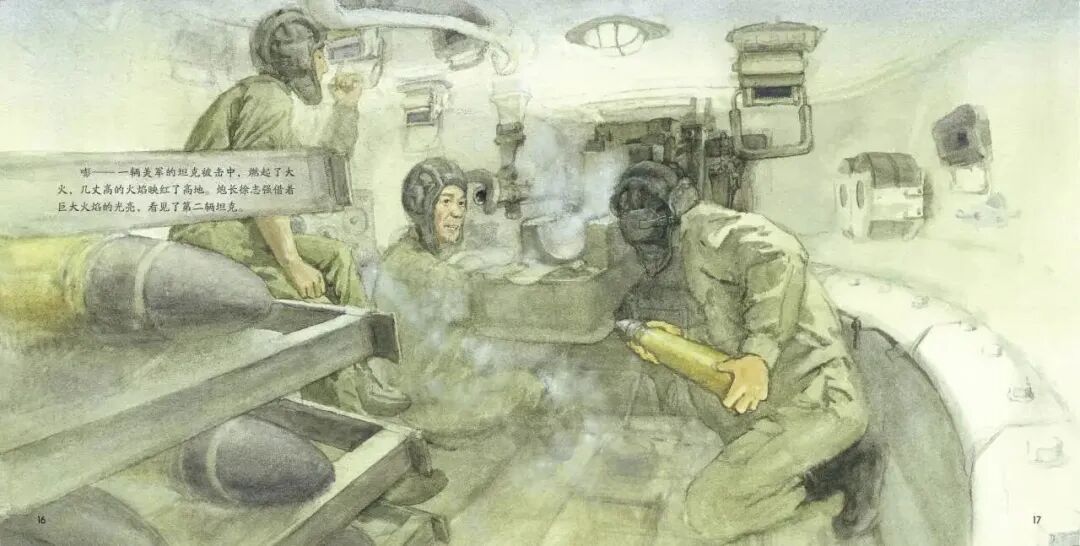 不同于电影的宏大叙事,《英雄战车》作为中少总社九神鹿绘本馆的作品,用细腻的图画和孩子能懂的语言,把英雄故事变得可触可感。4-7岁的孩子能看懂:英雄不是“超人”,是杨阿如沉着指挥的模样,是战士们“饿到晕倒也不肯撤离”的坚守,是五个人拧成一股绳的团结。就像电影里那些无名战士的牺牲,215号的故事告诉孩子:和平不是天上掉下来的,是“钢铁”和“血肉”一起拼出来的。