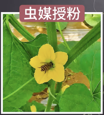 苦瓜还会开出可爱的黄色小喇叭花,雄花负责提供花粉,雌花负责孕育出小苦瓜,蜜蜂和蝴蝶则负责牵线搭桥。它们穿梭在花丛中,不断地把雄花的花粉快递给雌花,这样,一场甜蜜的“植物婚礼”就完成啦!