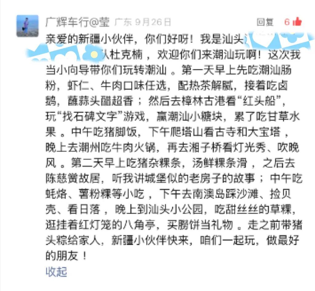 欢迎你们来潮汕玩啊!这次我当小向导带你们玩转潮汕。第一天早上先吃潮汕肠粉,虾仁、牛肉口味任选,配热茶解腻,接着吃卤鹅,蘸蒜头醋超香。然后我们去樟林古港看“红头船”,玩“找石碑文字”游戏,赢潮汕小糖块,累了吃甘草水果。中午吃猪脚饭,下午爬塔山看古寺和大宝塔,晚上去潮州吃牛肉火锅,再去湘子桥看灯光秀、吹晚风。