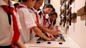 在讲解员引导下,学生们参观了曲尺等传统木工工具以及云梯、石磨等古代发明模型,动手体验了鲁班锁的拆解和组合,还借助VR、AR等现代科技体验了鲁班的发明创造过程。