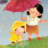 滴滴答,滴滴答……下雨啦!青蛙跳进小池塘,看见鱼儿追着雨滴玩耍。下雨,不怕!