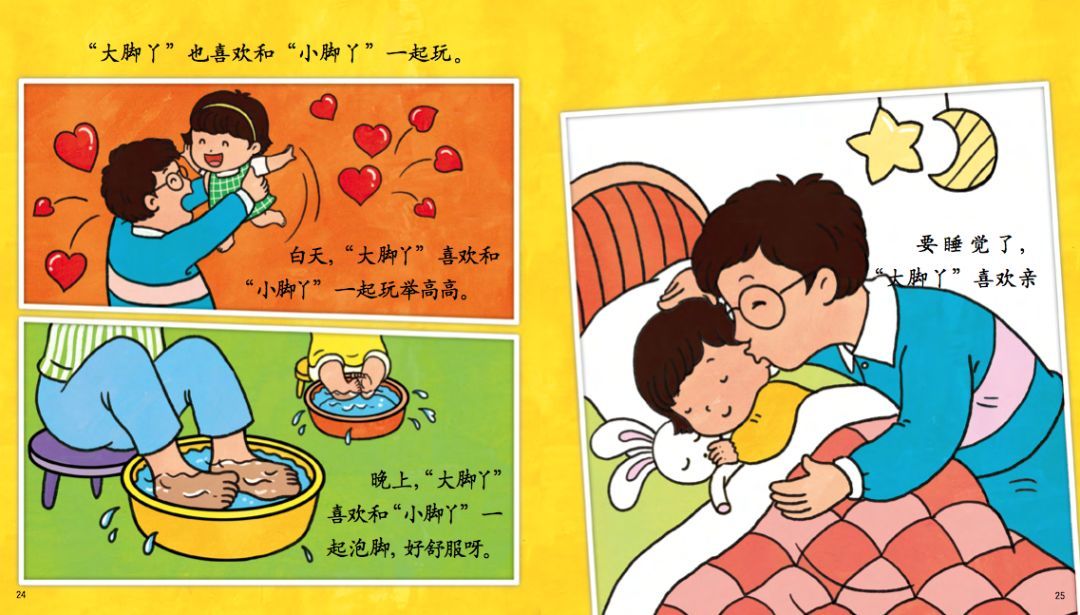 晚上,“大脚丫”喜欢和“小脚丫”一起泡脚,好舒服呀。