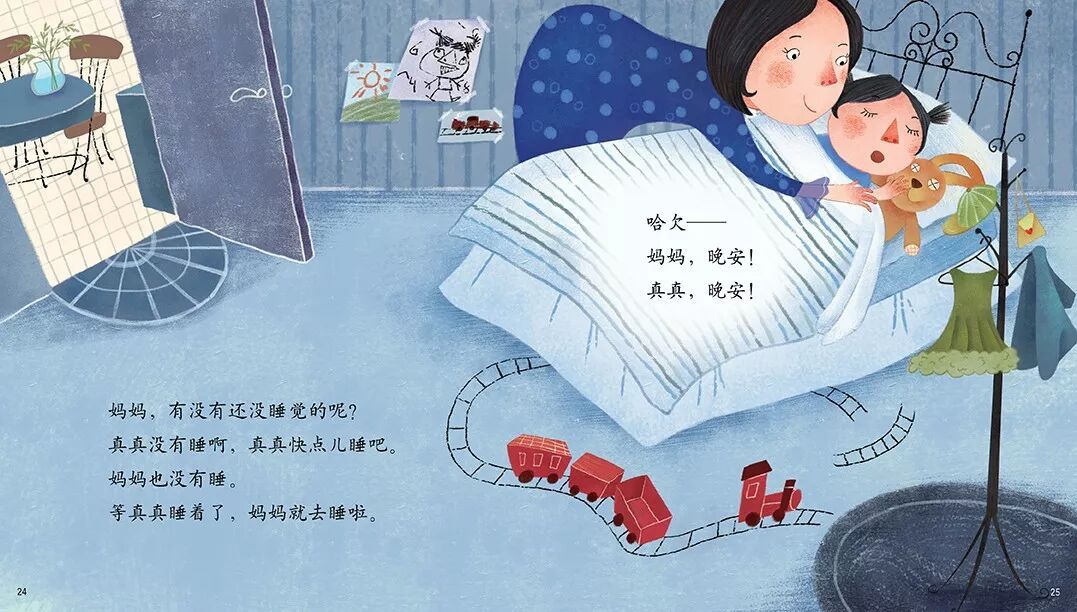 等真真睡着了,妈妈就去睡啦。