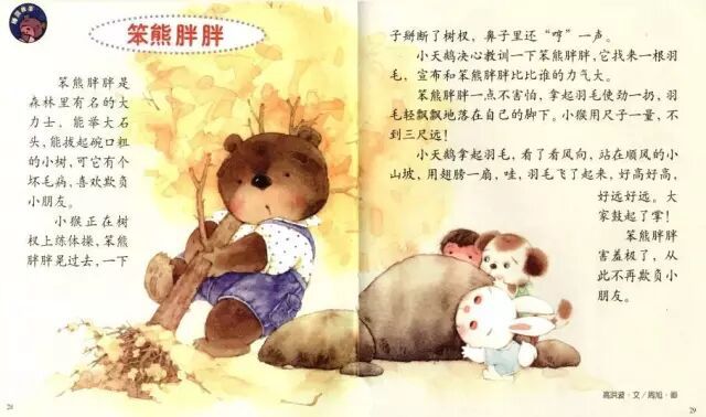 笨 熊 胖 胖 是 森 林 里 有 名 的 大 力 士 , 能 举 大 石 头 , 能 拔 起 碗 口 粗 的 小 树 , 可 它 有 个 坏 毛 病 , 喜 欢 欺 负 小 朋 友 。