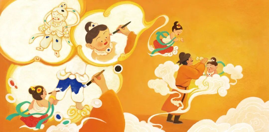 “怎么让孩子听得懂敦煌,看见它更灿烂、更丰富、更真实的样貌?”这是系列绘本文字主创、云南大学教授邢耀龙最初接到的创作命题。作为土生土长的甘肃人,曾在敦煌研究院工作的他,常年担任孩子与洞窟世界的“链接者”,也深知青少年对敦煌文化的好奇与认知难点。此前,他创作的《敦煌大历史》意外收获大量青年读者,这让他决心进一步拓宽视野,“把敦煌装在更年轻的生命当中”。