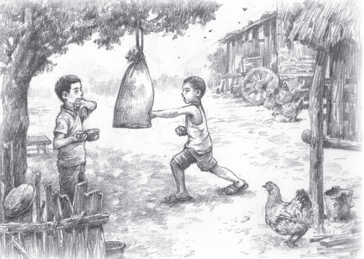 我和堂哥几乎每天都要去捉蚂蚱,这是家里大人给下的任务。村南的稻田里多的是稻蝗和剑角蝗,我和堂哥在田埂上边走边捉,手不停,嘴也不停,谈论着昨晚的电视剧《射雕英雄传》。
