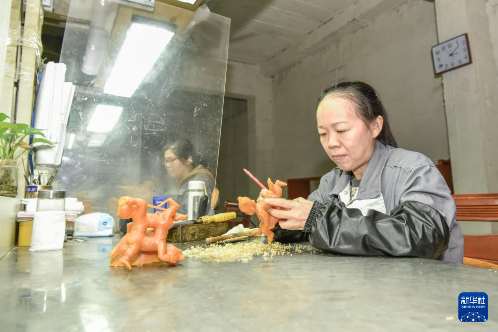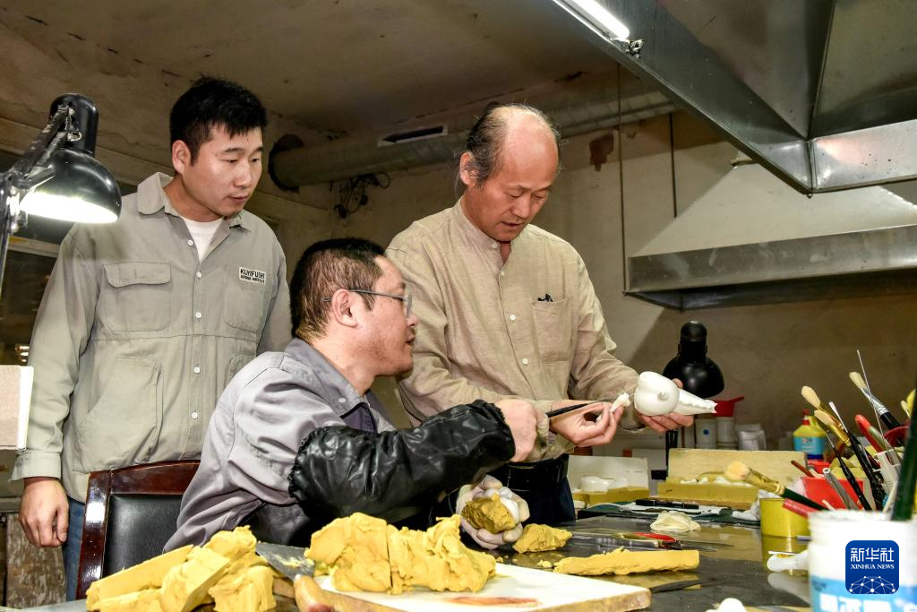 10月27日,郑东平在位于铜陵市的工作室内修蜡模。新华社发(储著传 摄)