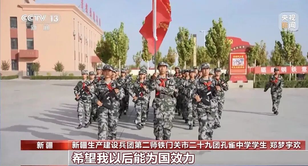新疆生产建设兵团第二师铁门关市二十九团孔雀中学少先队员 郑梦宇欢:这几天的训练不仅锤炼了我们的品格,锻炼了我们的意志,也更加让我坚定了以后我想当兵的这个决心,希望我以后能为国效力。