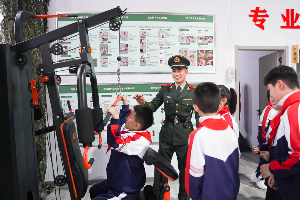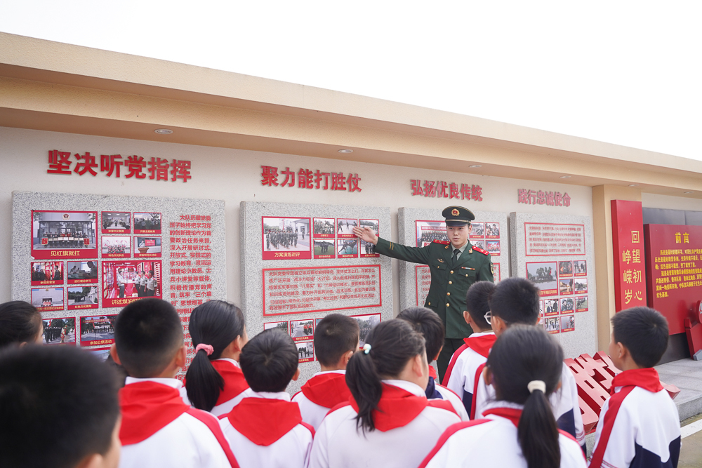 “这是我们在抢险救灾时使用的装备……”在国防教育墙前,武警叔叔结合一幅幅照片、一段段纪实,为队员们讲述部队的光荣传统与使命担当。队员们凝神聆听,眼神中闪烁着对军人奉献与忠诚的深深敬佩。