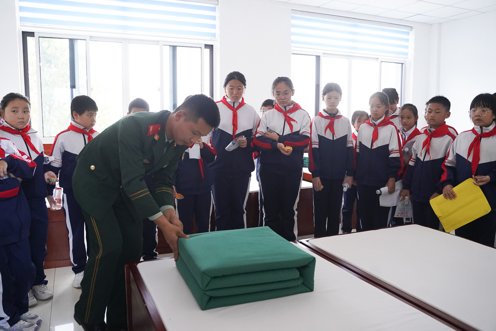 “看,武警叔叔的被子叠得像豆腐块一样!”10月16日,在山东省聊城市冠县教体局的精心组织下,东街学校的少先队员们走进庄严的军营,零距离感受军营氛围、触摸训练装备、体验军人日常,一场以“行走的课堂”为形式的国防教育实践,悄然在队员们心中播下爱国强军的种子。