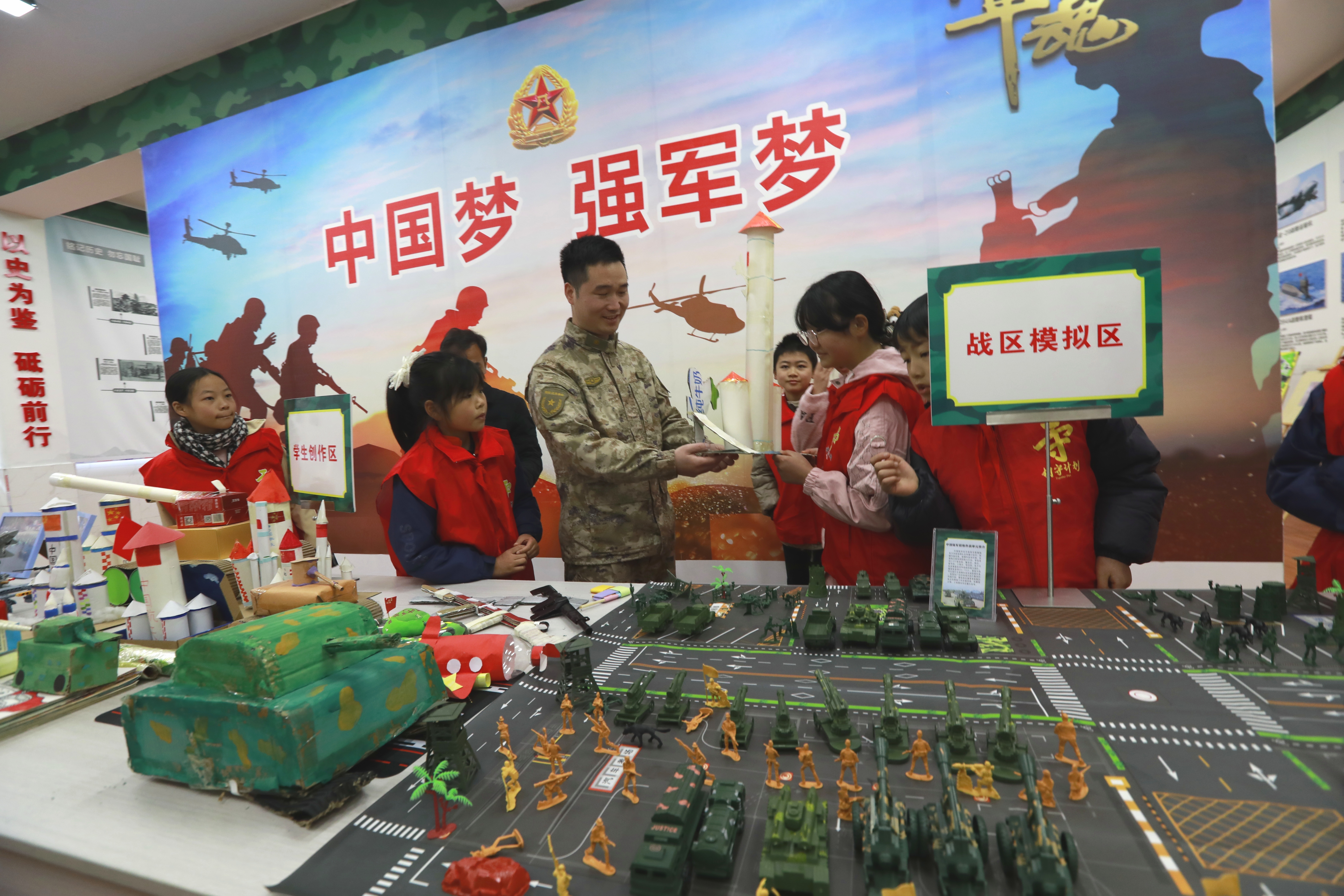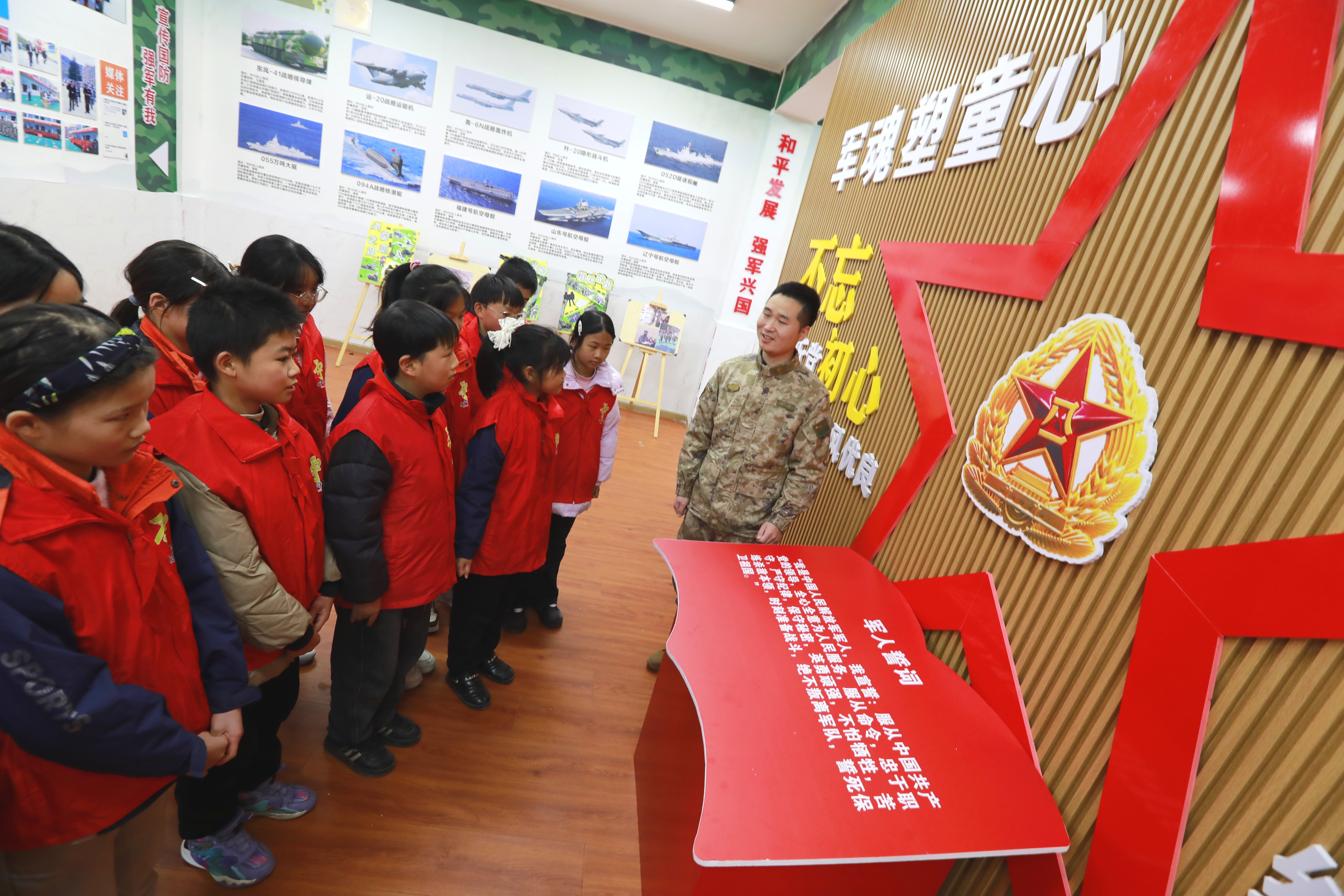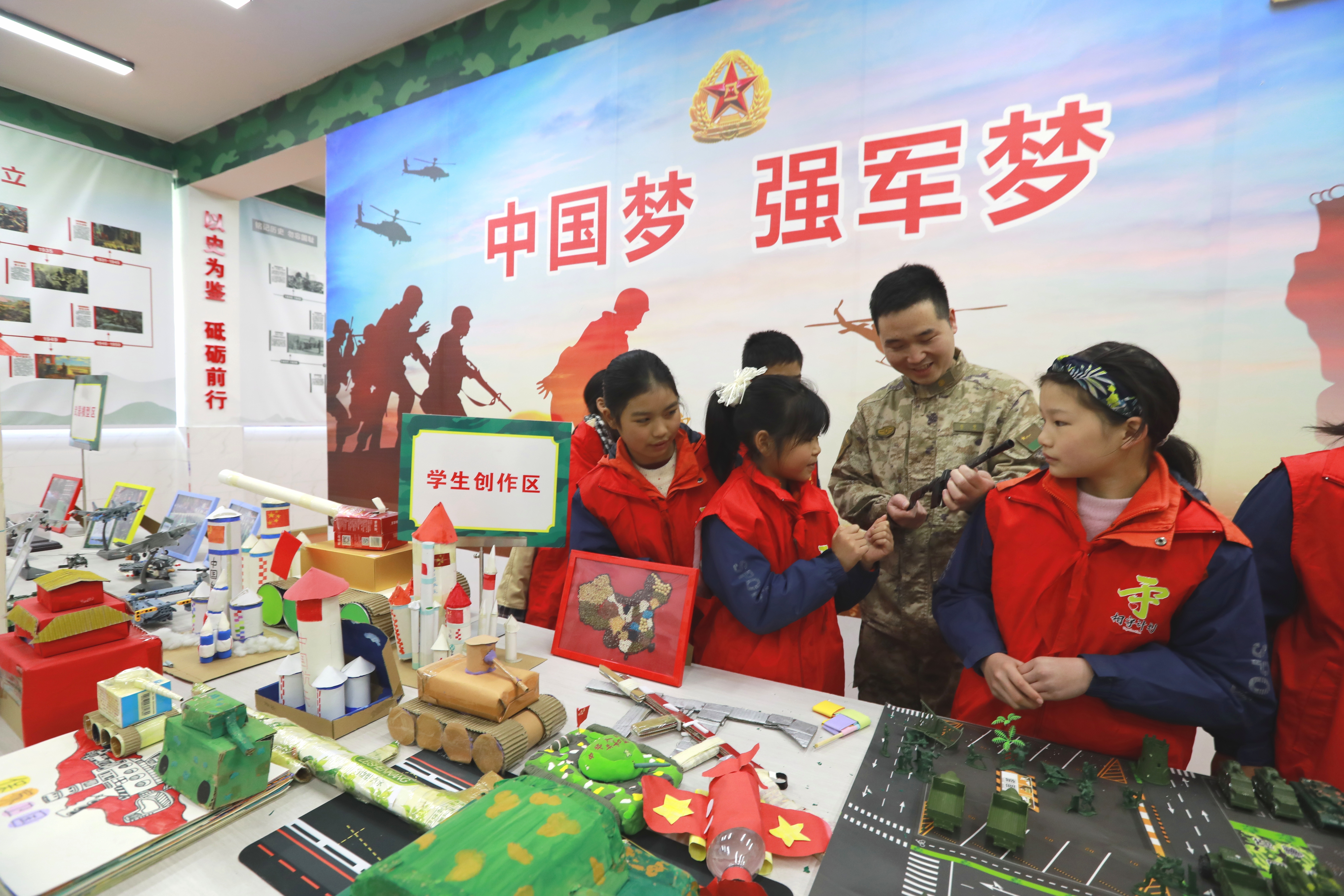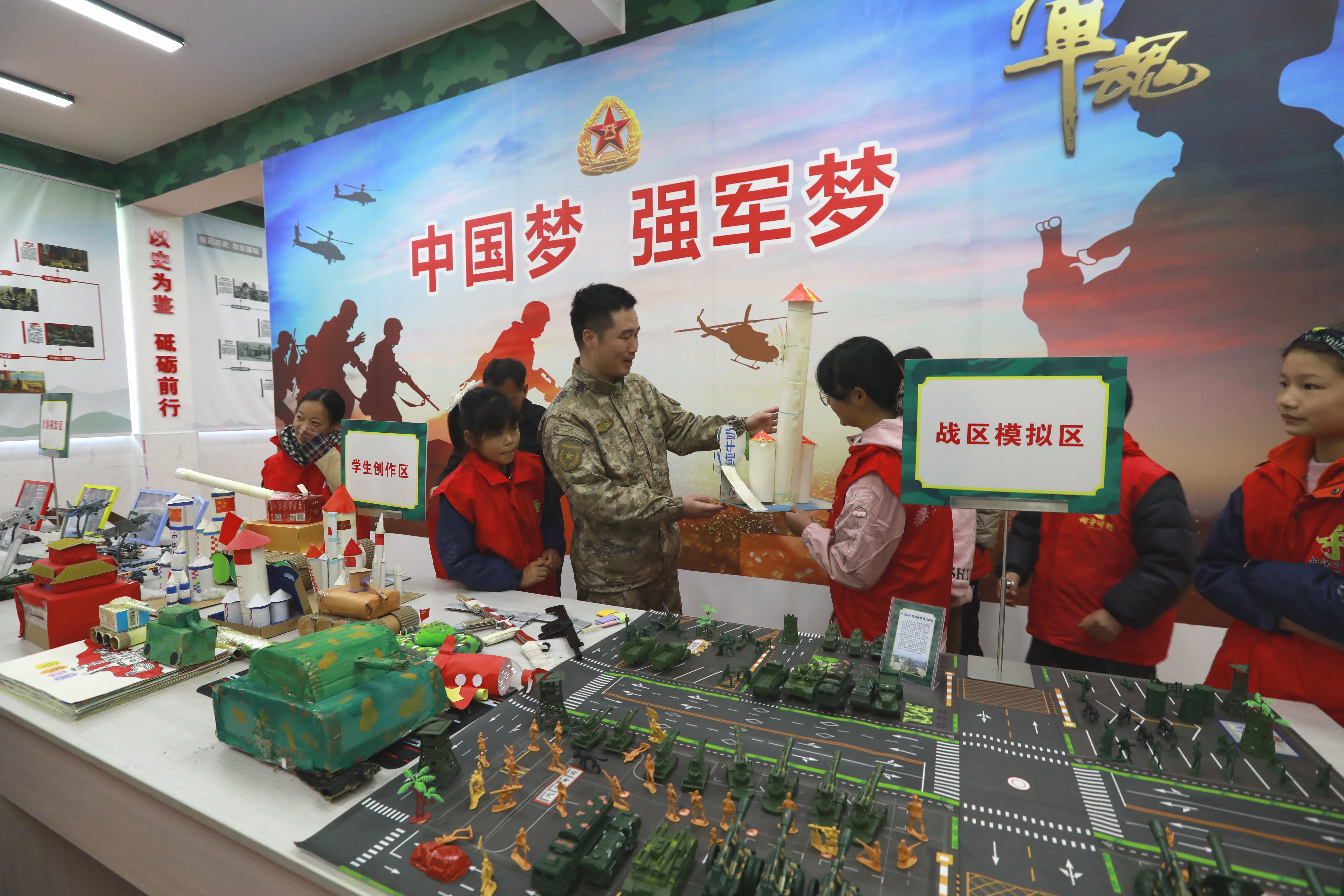 在学校的国防教育展厅里,一件件由废旧物品制成的军事模型格外引人注目:火箭、坦克、边防哨所……这些都是孩子们发挥奇思妙想亲手制作的。“我做的是中国空间站,”五年级学生小军骄傲地展示着自己的作品,“我长大后想当航天员,为国家探索太空。”另一侧,一幅幅国防教育主题手抄报整齐陈列,孩子们用稚嫩的画笔描绘着心中强军梦。而在历史展区,一张张珍贵的历史照片、一段段悲壮的战争回忆,则无声地诉说着历史的教训,警醒孩子们铭记历史、珍爱和平。“看到孩子们眼中的光芒,我就知道这次活动值了。”杜峰告诉笔者,作为军分区派驻新茶村的第一书记,他不仅要助力乡村振兴,更要将国防教育的火种播撒在乡村校园。