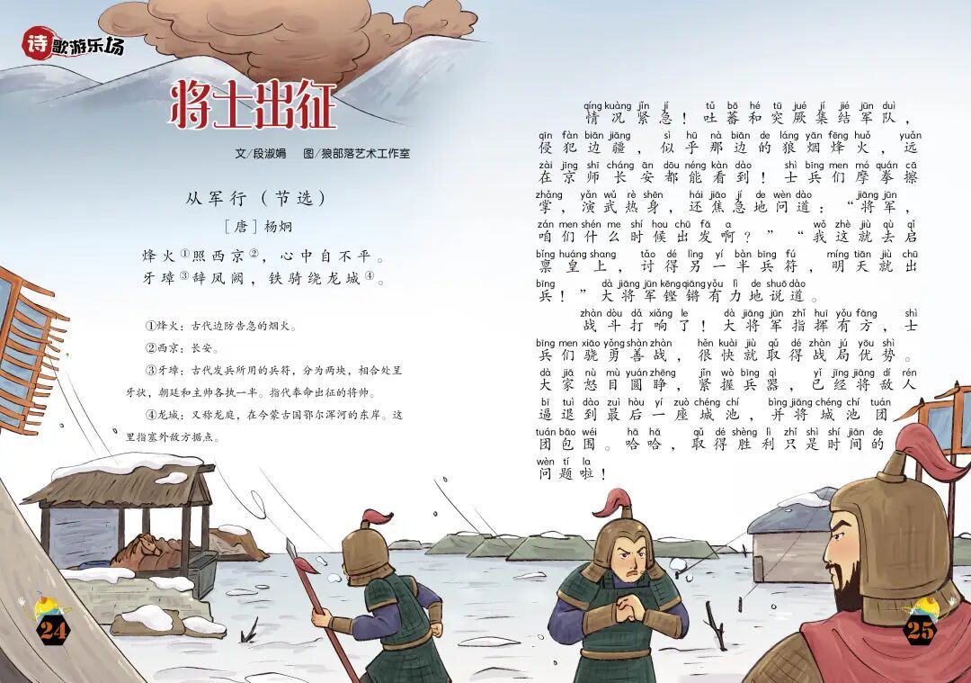 士兵们摩拳擦掌,演武热身,焦急地询问将军:“咱们什么时候出发啊?”“我这就去启禀皇上,讨得另一半兵符,明天就出兵!”大将军铿锵有力地说道。