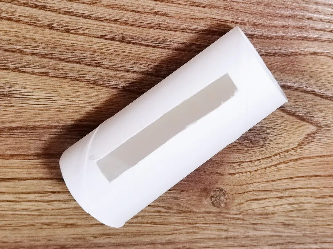 提前准备好一个卷纸芯,用剪刀在卷纸芯上切出一个长方形的切口。