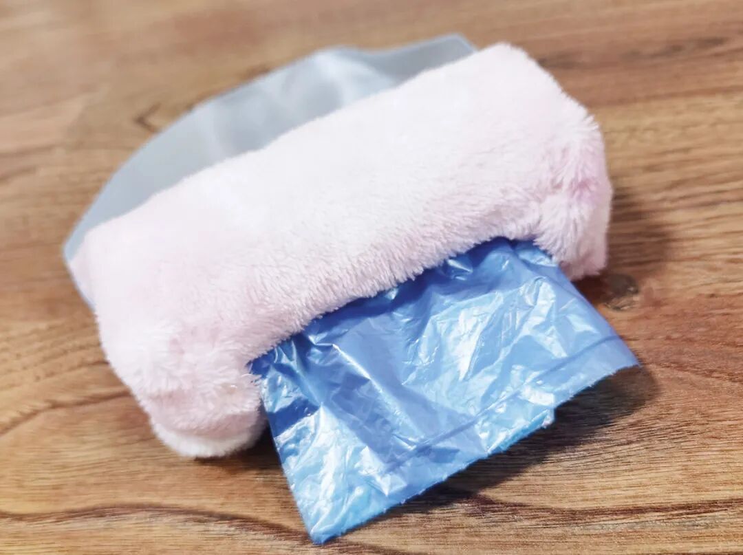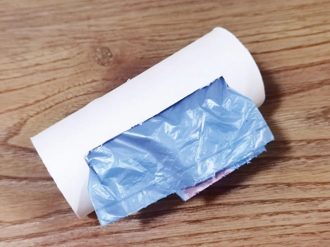 最后,用同样的方法处理卷纸芯切口处。一个美观又实用的便便收纳袋就做好啦!