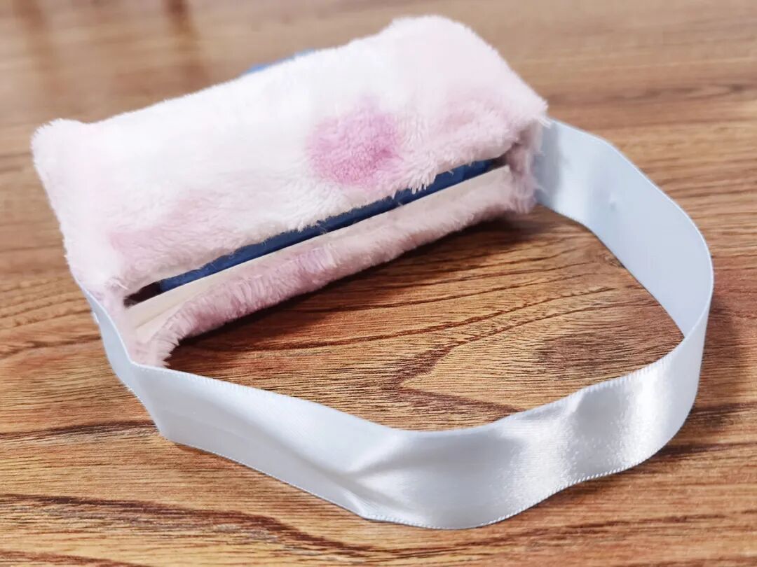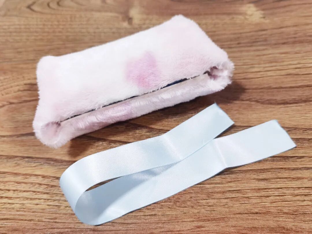 准备一截丝带,用针线将丝带缝在卷纸芯两侧的布料上。