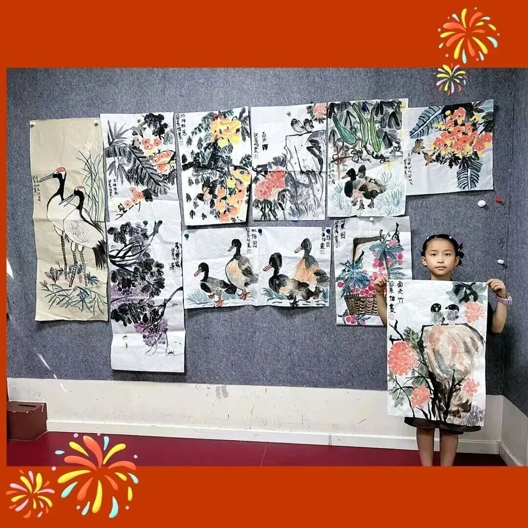 亲爱的祖国母亲,当我以稚嫩却真诚的笔触在宣纸上晕染出花鸟的灵动、山水的气韵时,我知道,每一抹墨色都是我对您炽热的告白。