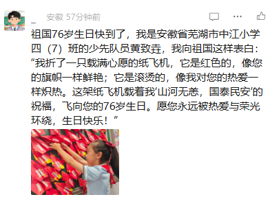@全体少先队员,“我向祖国送祝福”征集活动开始啦!快来表达你对祖国的爱意吧!