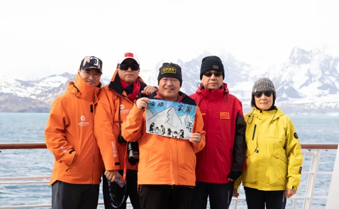 10月23日,南极南乔治亚群岛的 “海神号” 邮轮上,一场跨越学术、艺术与公益的珍贵互动温情上演——2007 年诺贝尔和平奖获得者约翰・E・海(John E. Hay)教授携夫人海伦・亨利(Helen Henry),为北京小学生何曼琳的画作《南极家园》签名致意,并与画作守护者、何曼琳父亲何世红(右)一起合影,用权威认可为这幅承载少年环保初心的作品赋予更深重的意义。