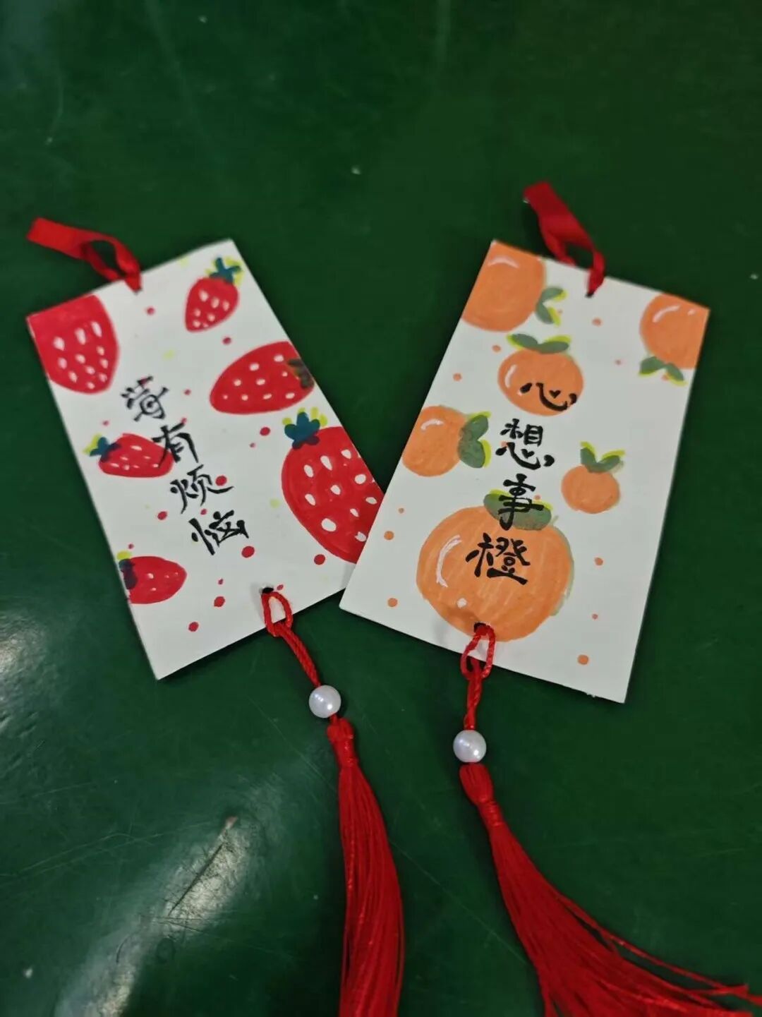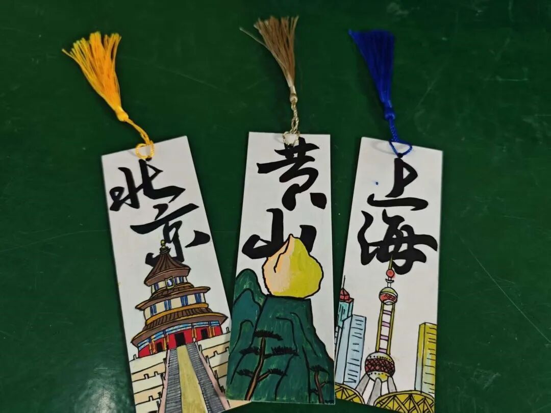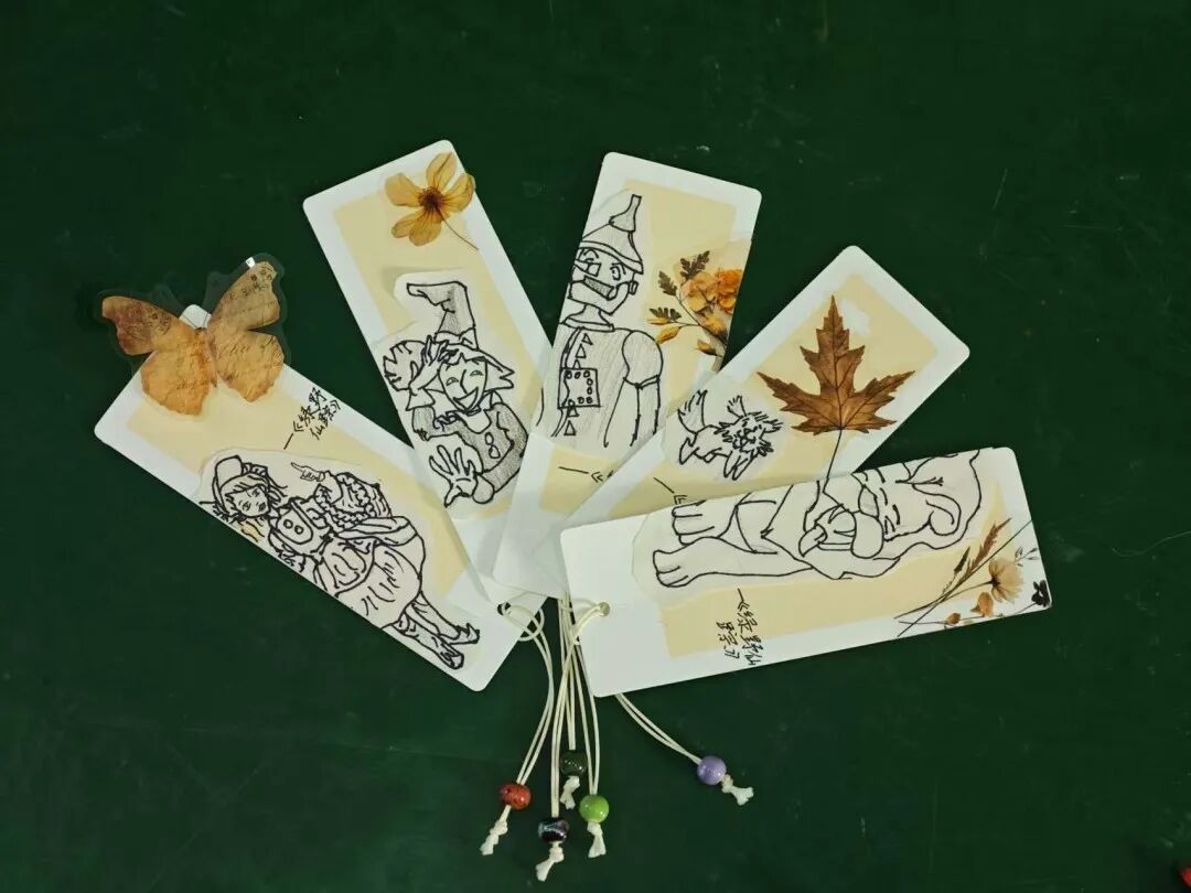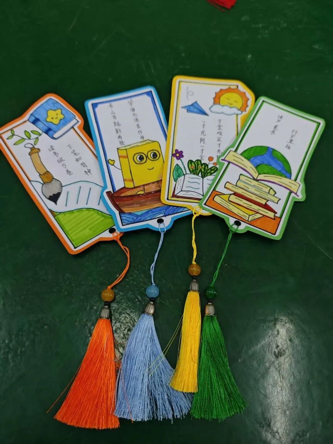 三年级学生巧用卡纸、彩绳、干花等材料,将奇思妙想与读书热忱凝于方寸书签。或绘书中经典人物,惟妙惟肖;或书励志读书格言,字迹工整;或做立体创意造型,趣味十足。这些小巧的书签不仅是阅读标记,更承载着孩子们对知识的渴望与对美的追求。