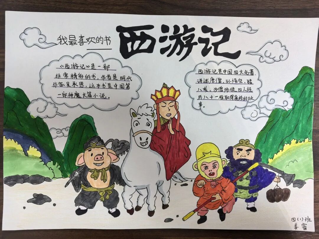 同学们以纸为载体,将阅读理解、好词摘抄、人物分析与读后感,通过精心排版、精美插画与工整书写浓缩成读书报。图文并茂的作品,既是阅读成果的展示,更是审美、归纳与创新能力的集中体现。