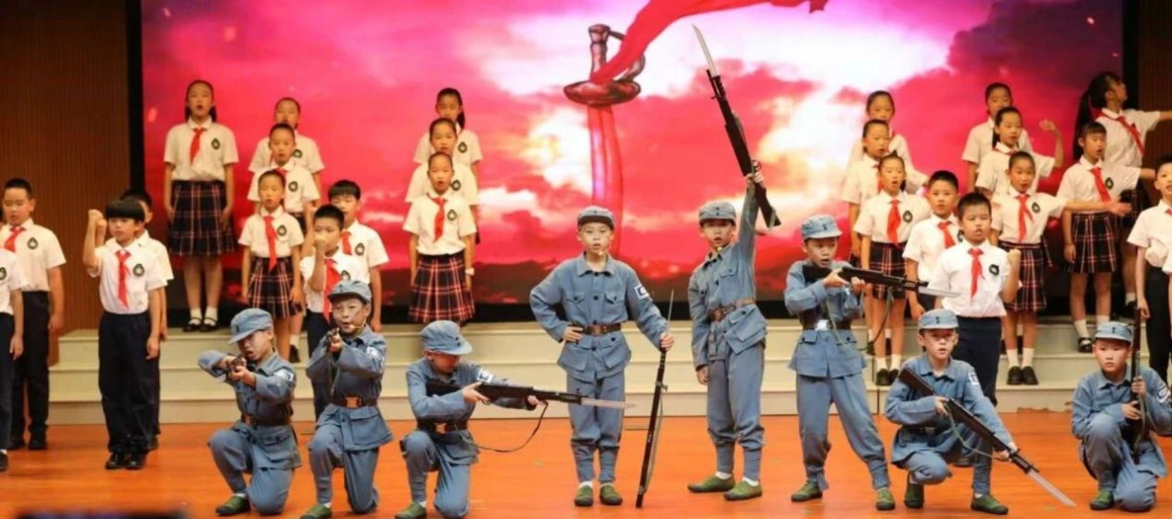 “我们倡议:我们是英雄中队的传承人……”宁波市少先队总辅导员沈艳带领全体队员宣读《百面英雄战旗宁波宣言》。抗战英雄后代与宁波老干部文工团合唱《保卫黄河》,嘹亮歌声激荡人心,红色血脉在老少两代人的共鸣中赓续。