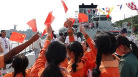 9月30日上午,中国海军戚继光舰、沂蒙山舰抵达香港水域,随即由宿迁舰和香港特区政府船只引航,驶向中国人民解放军驻香港部队昂船洲军营。