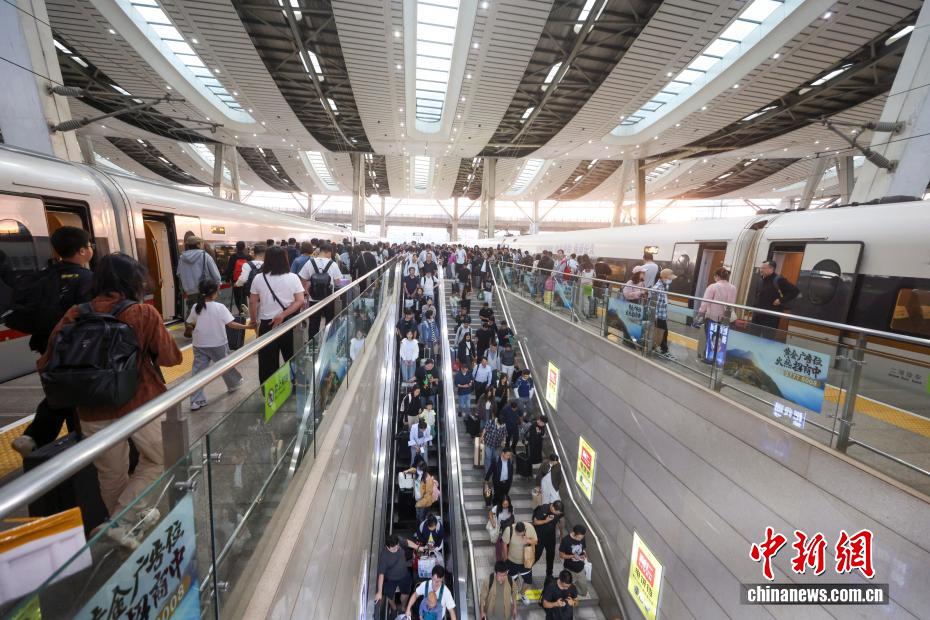 9月30日,旅客在北京南站乘车。据中国国家铁路集团有限公司发布消息显示:9月30日,铁路迎来国庆中秋假期客流高峰,全国铁路预计发送旅客1840万人次,计划加开旅客列车2002列。