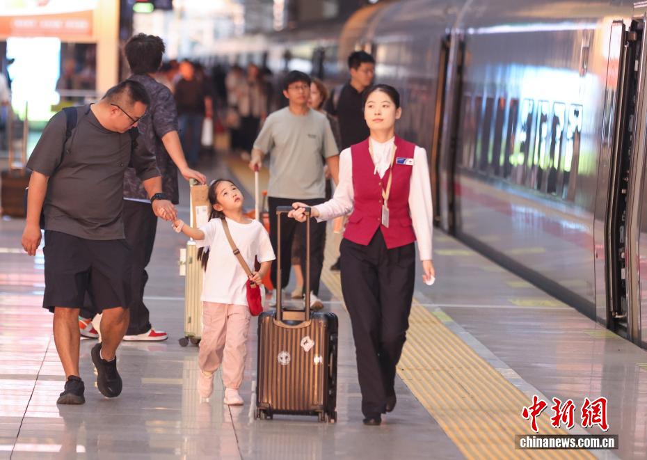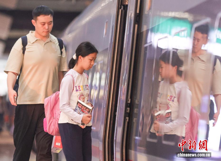 9月30日,小旅客带着小说在北京南站乘坐高铁列车。据中国国家铁路集团有限公司发布消息显示:9月30日,铁路迎来国庆中秋假期客流高峰,全国铁路预计发送旅客1840万人次,计划加开旅客列车2002列。