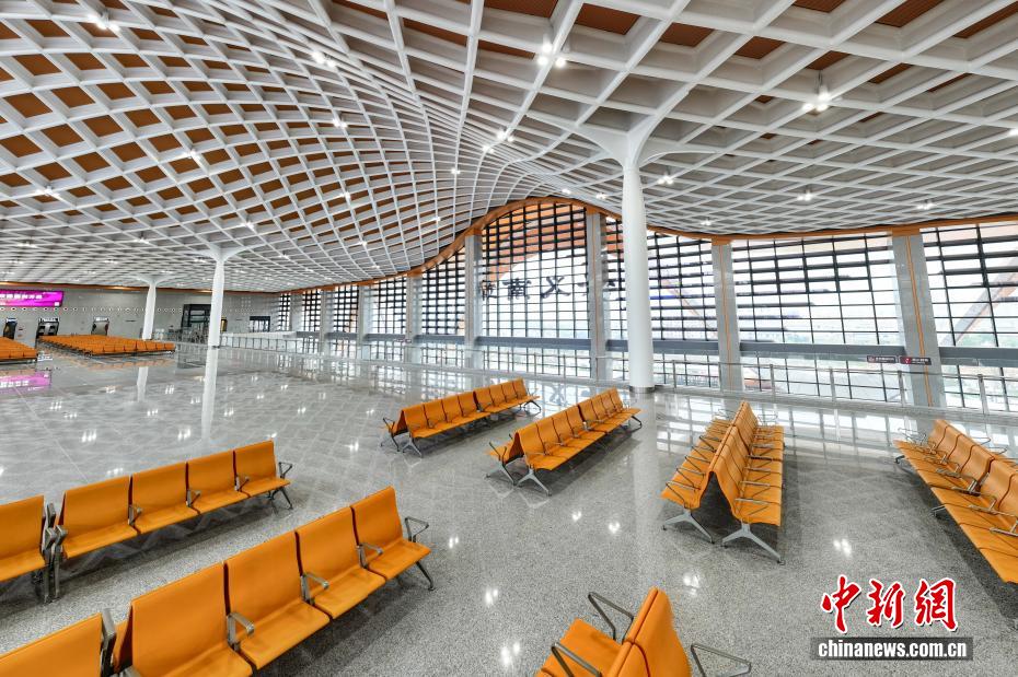 11月20日,航拍位于贵州省兴义市的兴义南站候车大厅。贵州盘州至兴义高速铁路(盘兴高铁)全长约99公里,设计时速250公里,自沪昆客专盘州站引出,经盘州市石桥镇、响水镇、保田镇进入黔西南州兴义市,是贵州省“市市通高铁”的最后一个项目。盘兴高铁共设车站3座,其中改建盘州站,新建保田站、兴义南站。该高铁将于2025年11月底通车,通车后贵阳至贵州省内8个市(州)中心城市将形成1至2小时高铁交通圈。(无人机照片)