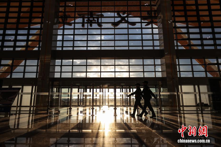 11月19日,贵州省兴义市,贵阳铁路公安处铁路警察在兴义南站候车大厅巡逻。贵州盘州至兴义高速铁路(盘兴高铁)全长约99公里,设计时速250公里,自沪昆客专盘州站引出,经盘州市石桥镇、响水镇、保田镇进入黔西南州兴义市,是贵州省“市市通高铁”的最后一个项目。盘兴高铁共设车站3座,其中改建盘州站,新建保田站、兴义南站。该高铁将于2025年11月底通车,通车后贵阳至贵州省内8个市(州)中心城市将形成1至2小时高铁交通圈。