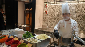 12月24日,哈萨克斯坦首都阿斯塔纳,一场中国美食推介活动在北京大厦阳光酒店内举行。现场设置多个美食摊位,烤鸭、拉面、煎饼果子等一众中国特色美食吸引不少当地民众专程前来品尝。