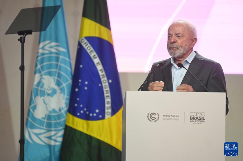 11月10日,巴西总统卢拉在巴西北部城市贝伦举行的《联合国气候变化框架公约》第三十次缔约方大会(COP30)开幕式上发表讲话。