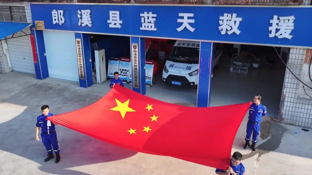 “我站在这面国旗之下,感到了祖国的伟大,我很荣幸,我长大以后也要像蓝天救援队的叔叔阿姨们一样,为社会做有意义的事。”郎溪县实验小学学生徐明宇说。