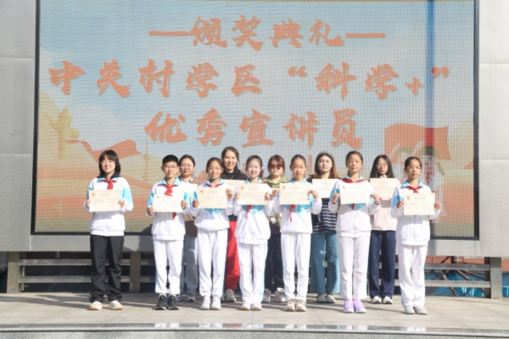 除了暑期实践中的佼佼者,学校还有多名党团员教师和少先队员凭借扎实的科学知识、出色的表达能力,在中关村学区“科学+”宣讲活动中脱颖而出,荣获“科学+”优秀宣讲员称号!他们用生动的语言传播科学思想,用积极的行动践行科学精神,为学校赢得了荣誉,也为全体师生树立了“以科学赋能成长”的好榜样。
