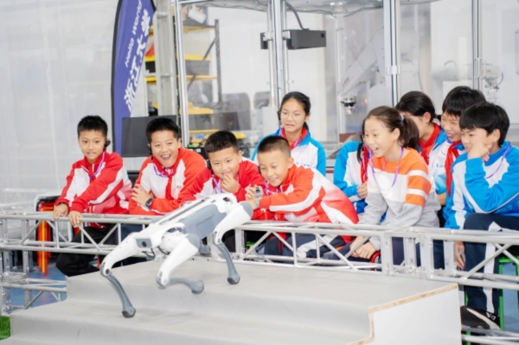 在浙江大学,队员们不仅在校史馆中感受百年学府的学术积淀,更在流体动力与机电系统国家重点实验室里,亲眼见到用于国家重大工程的盾构机模型,领略“国之重器”背后的科技力量;在“机器人梦之队”基地,摘草莓机器人、四足机器狗等前沿科技成果引发阵阵惊叹。队员们亲手操作、互动体验,在科技与智慧的碰撞中激发探索热情。