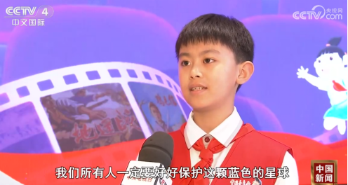 本报小记者刘笑鸿接受央视记者采访。图源:央视网