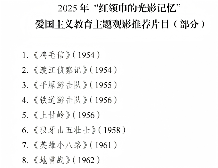 活动为全国少先队员推荐30部优秀爱国题材影片。
