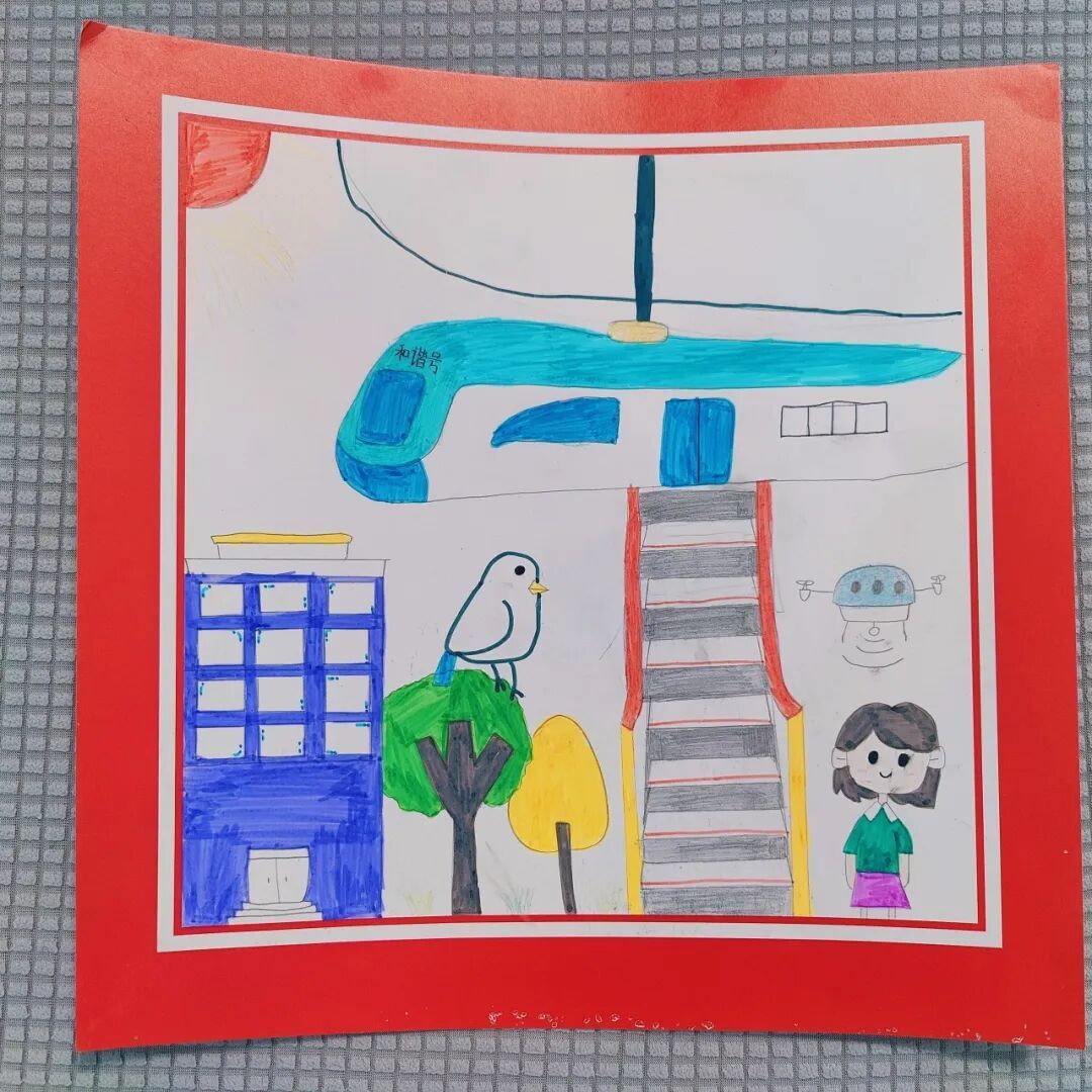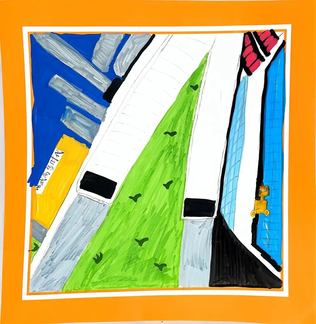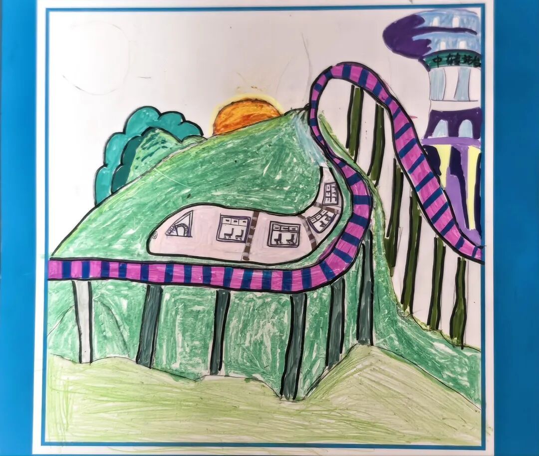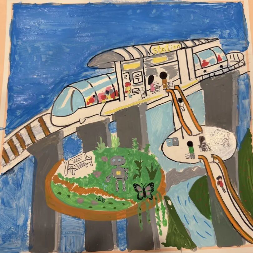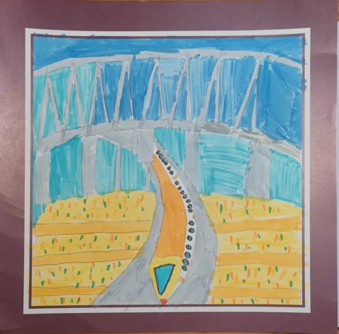 终于到了动手绘画的环节!参观了一下午的车站,小记者对于未来的铁路和沿途风景早已满是憧憬,迫不及待想要把这些灵感画下来。面对着窗外的铁路,小记者们在滕老师的指导下开始了创作。一起来看看他们的作品吧!