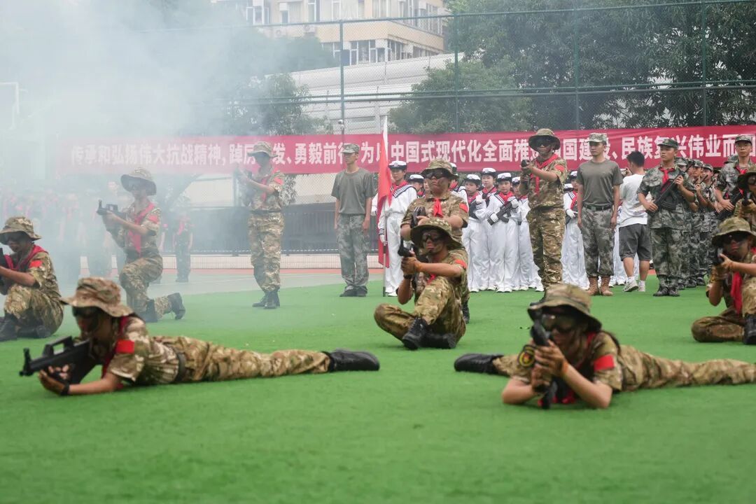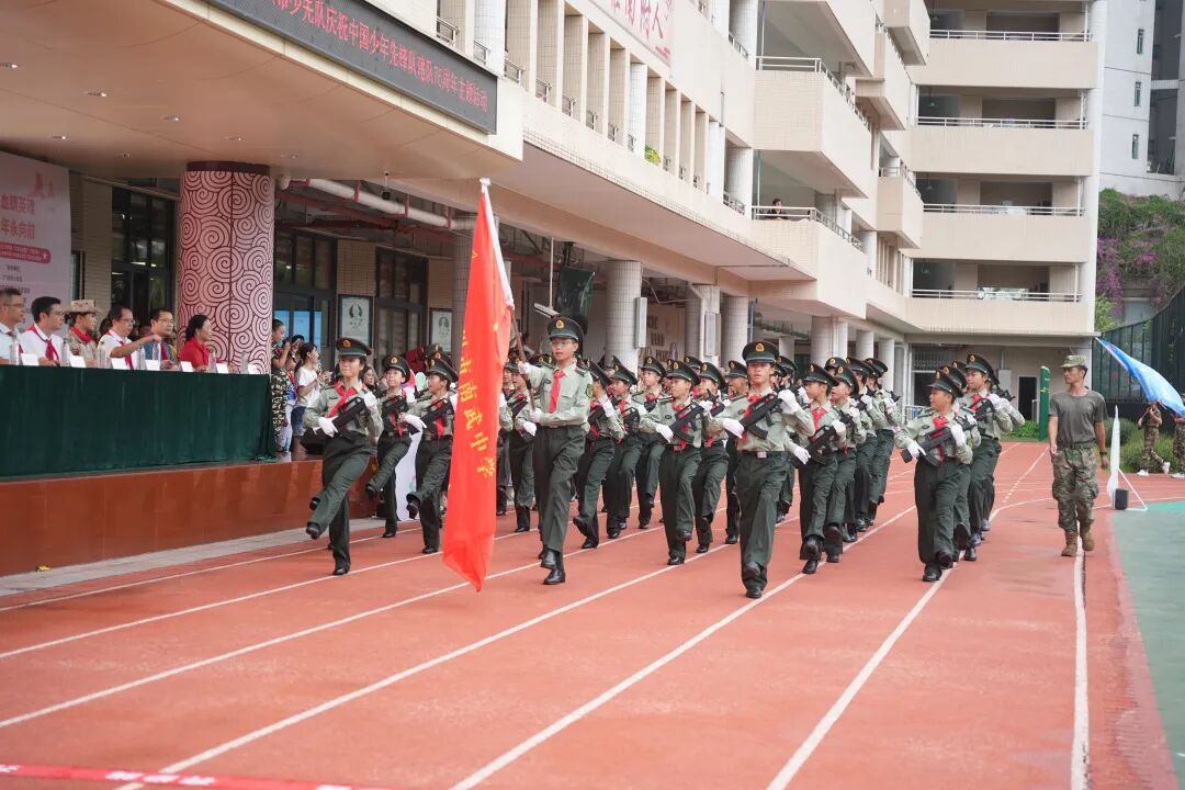 在海珠区,约540名少先队员齐聚广州市南武中学附属学校开展军事技能比拼,现场进行了分列式展示、特色科目汇报及“活力少年迎全运”军事体育障碍赛。《刺杀操》的吼声震天动地,展现了过硬的本领;队列式展示中,白色女兵方队步履铿锵,目光如炬,尽显巾帼不让须眉的风采。通过沉浸式的国防教育实践,队员们锤炼了意志、强健了体魄,更将爱党爱国的种子深植心中,充分展现了南粤少先队员昂扬向上、朝气蓬勃的精神风貌。