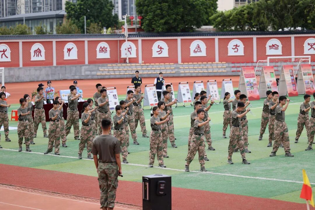 在增城区挂绿实验学校,少先队员们身着迷彩服,动作整齐划一、刚劲有力,每一个出拳、每一次踢腿都展现出十足的气势,充分彰显了队员们良好的精神风貌和过硬的身体素质。精彩的展示赢得了在场人员的阵阵掌声,也让少先队员们感受到了军人的纪律与担当,进一步激发了他们强身健体、报效祖国的热情。