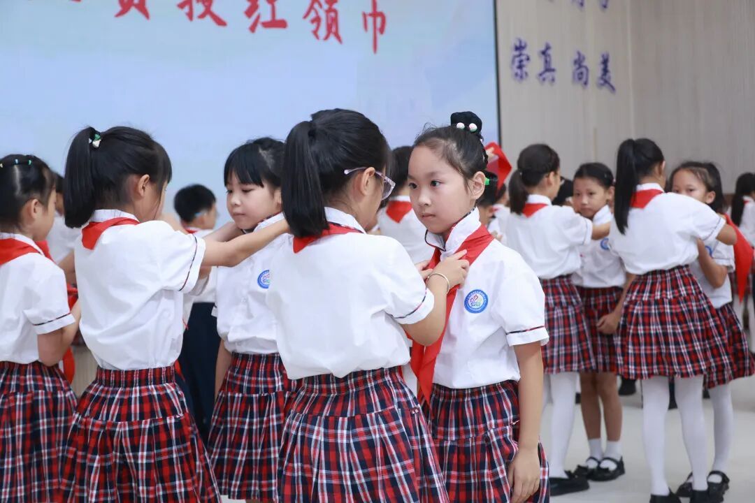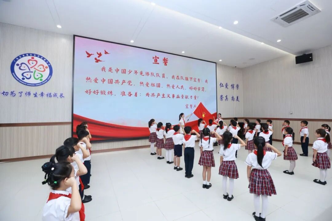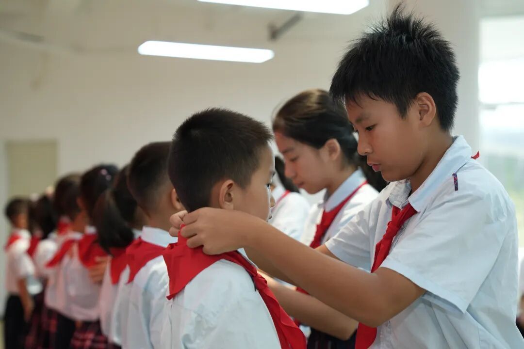 以榜样力量,规范入队标准。在黄埔区东荟花园小学,一场以“强国复兴有我 争当新时代好少年”为主题的少先队新队员入队仪式示范活动,为全区中小学大队辅导员树立了标杆。“我是中国少年先锋队队员。我宣誓……”新队员在队旗下庄严宣誓,当鲜艳的红领巾由老队员们郑重地为新队员系上时,一张张稚嫩的脸上写满了激动与自豪。入队仪式,不仅是一次深刻的政治启蒙,更是一次精神的洗礼,激励着全体少先队员牢记誓言,努力成长为有理想、有本领、有担当的时代新人。