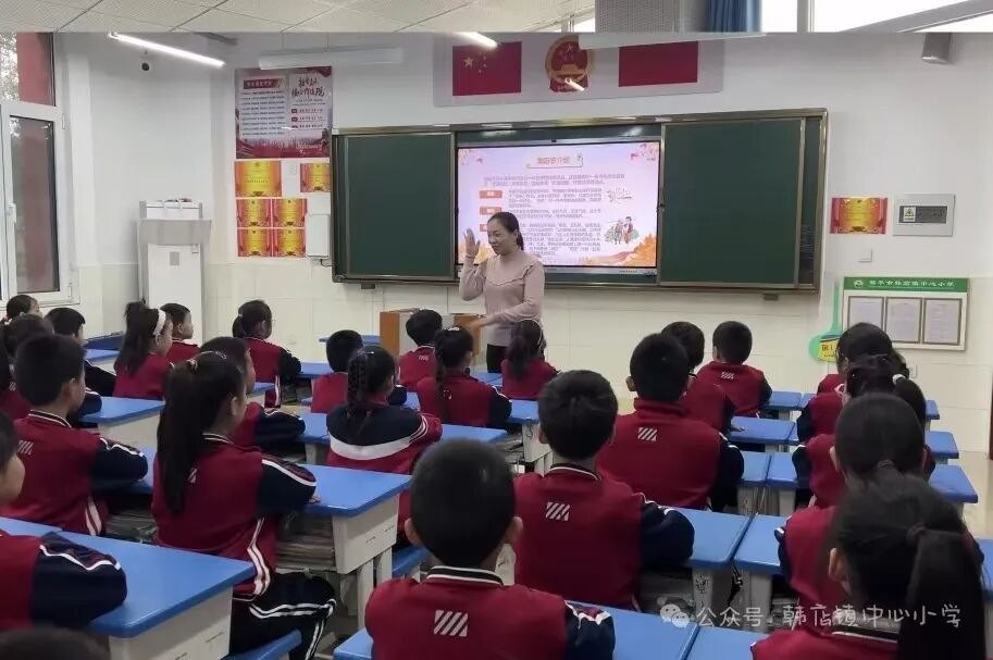重阳节的渊源故事、古今孝亲主题队会上,重阳的故事伴着轻音乐缓缓流淌。从古人插茱萸、敬老人的习俗,到身边爷爷冒雨送伞、奶奶灯下缝补的小事,队员们围坐在一起,你一言我一语,把“敬老”从书本上的词语,变成了记忆里的温暖片段。